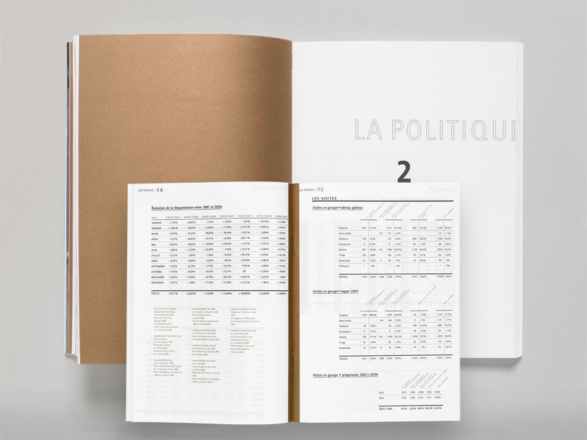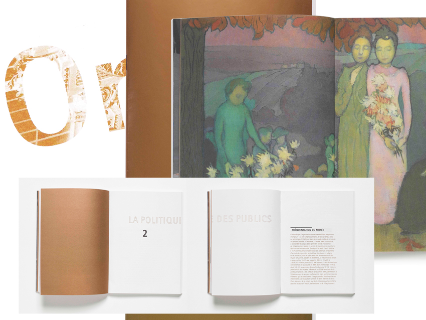 Pendant deux années successives, la conception graphique du rapport annuel m’a été confiée par le musée. Pour ces premières éditions, les contenus ont été travaillés sous deux formes reliées en une.