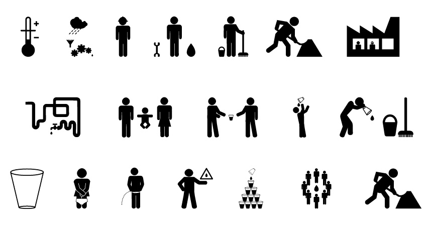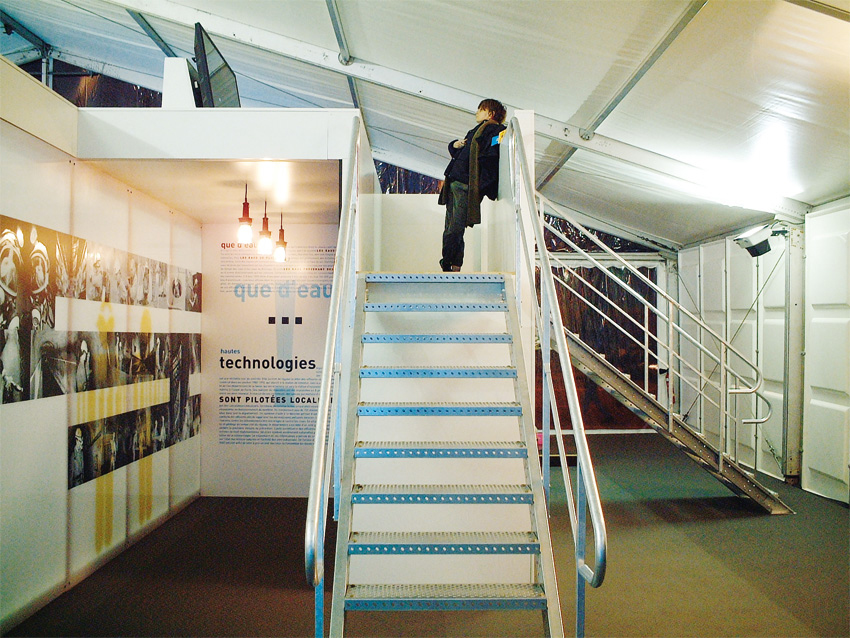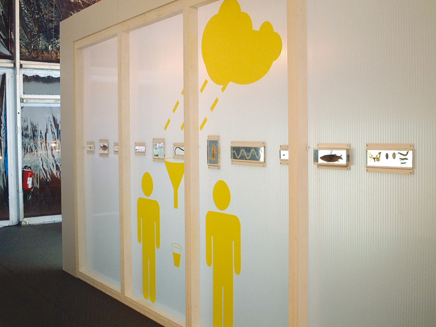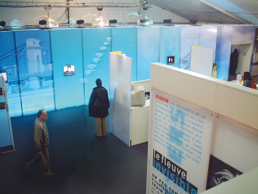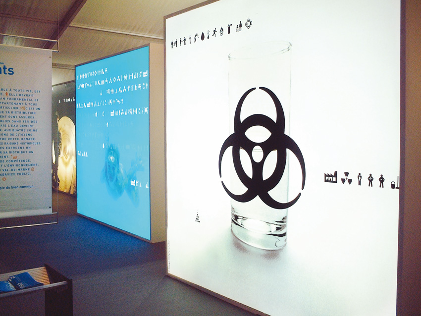 Le but est ici de faire découvrir au public du Val-de-Marne la problématique de l’eau et ses enjeux, à l’échelle de la ville, du département. Un vocabulaire de pictogrammes a été créé pour évoquer de manière ludique les différents usages de l’eau au quotidien. Les métiers, l’espace public, la santé et la solidarité sont les quatre thèmes génériques abordés à l’entrée et développés dans l’exposition.