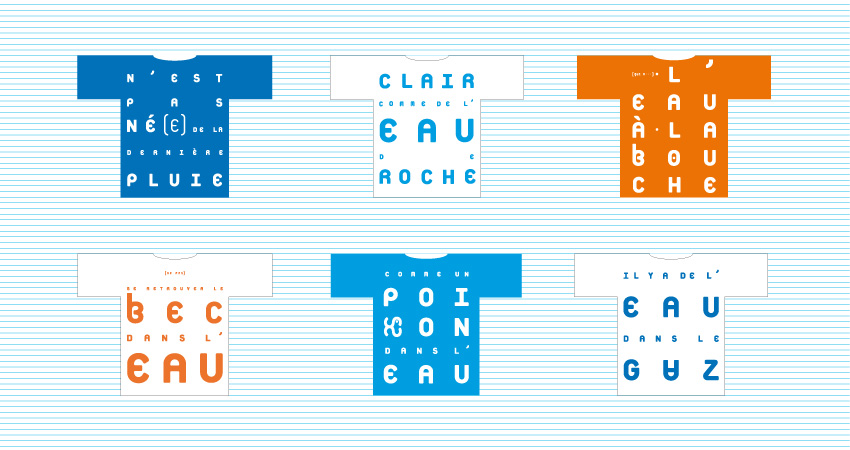 Une série de T-shirts, créés pour l’événement, propose des compositions typographiques ludiques, alliant proverbes, locutions et autres jeux de langage.
