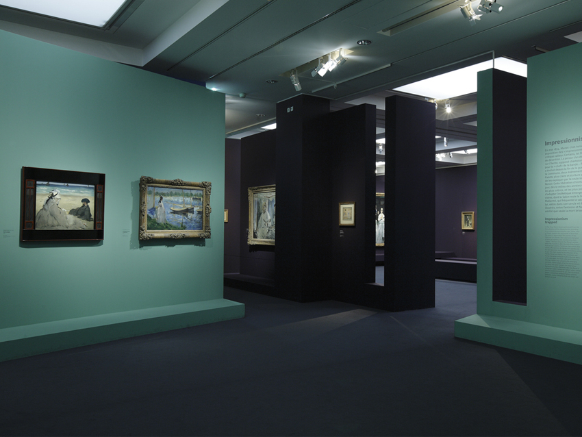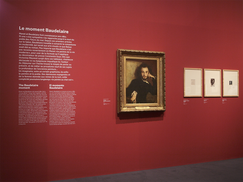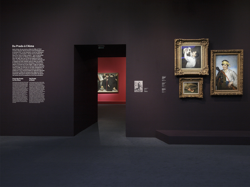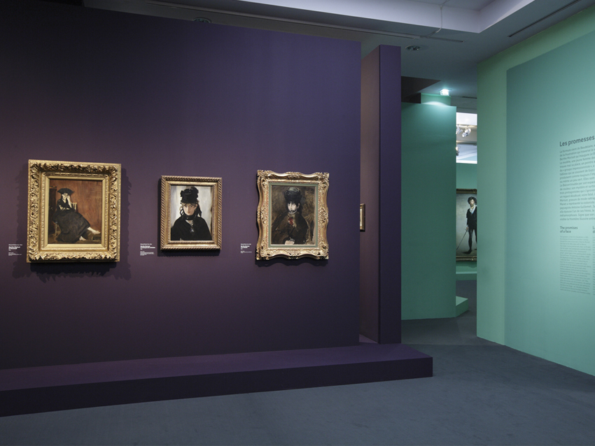 Les textes de l’exposition sont traités dans un caractère exclusif, choisi pour son dessin alliant classicisme et modernité. Pour exprimer cette modernité, le parti-pris de la présentation a été de rompre avec la tradition muséale. L’espace s’organise selon un choix de couleurs audacieuses, affirmées et saturées. Caractère AB BaldingerPro d’André Baldinger.